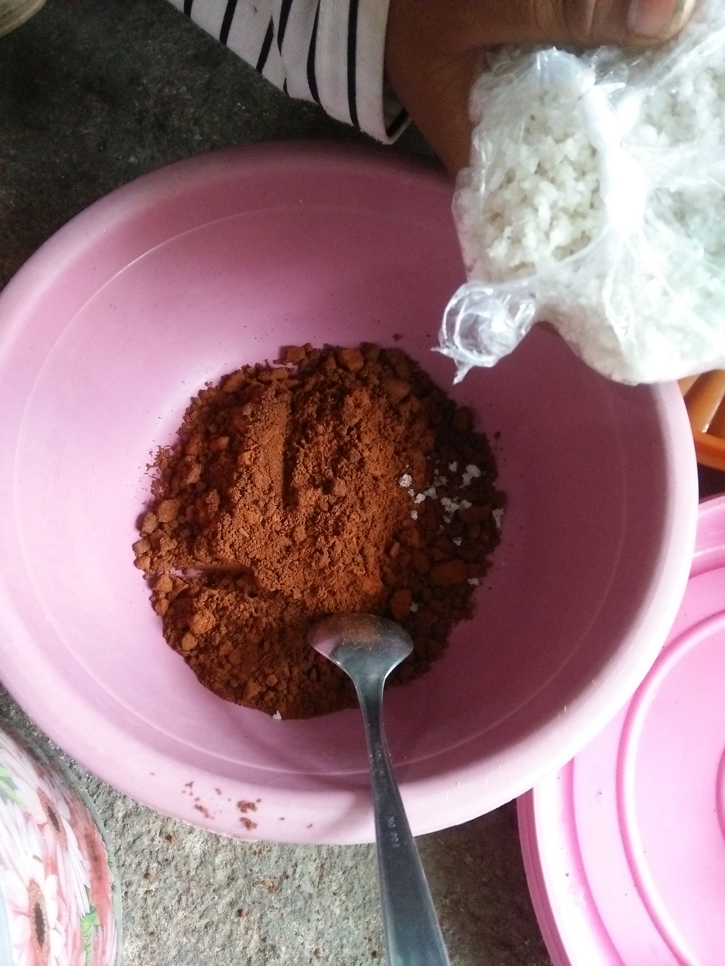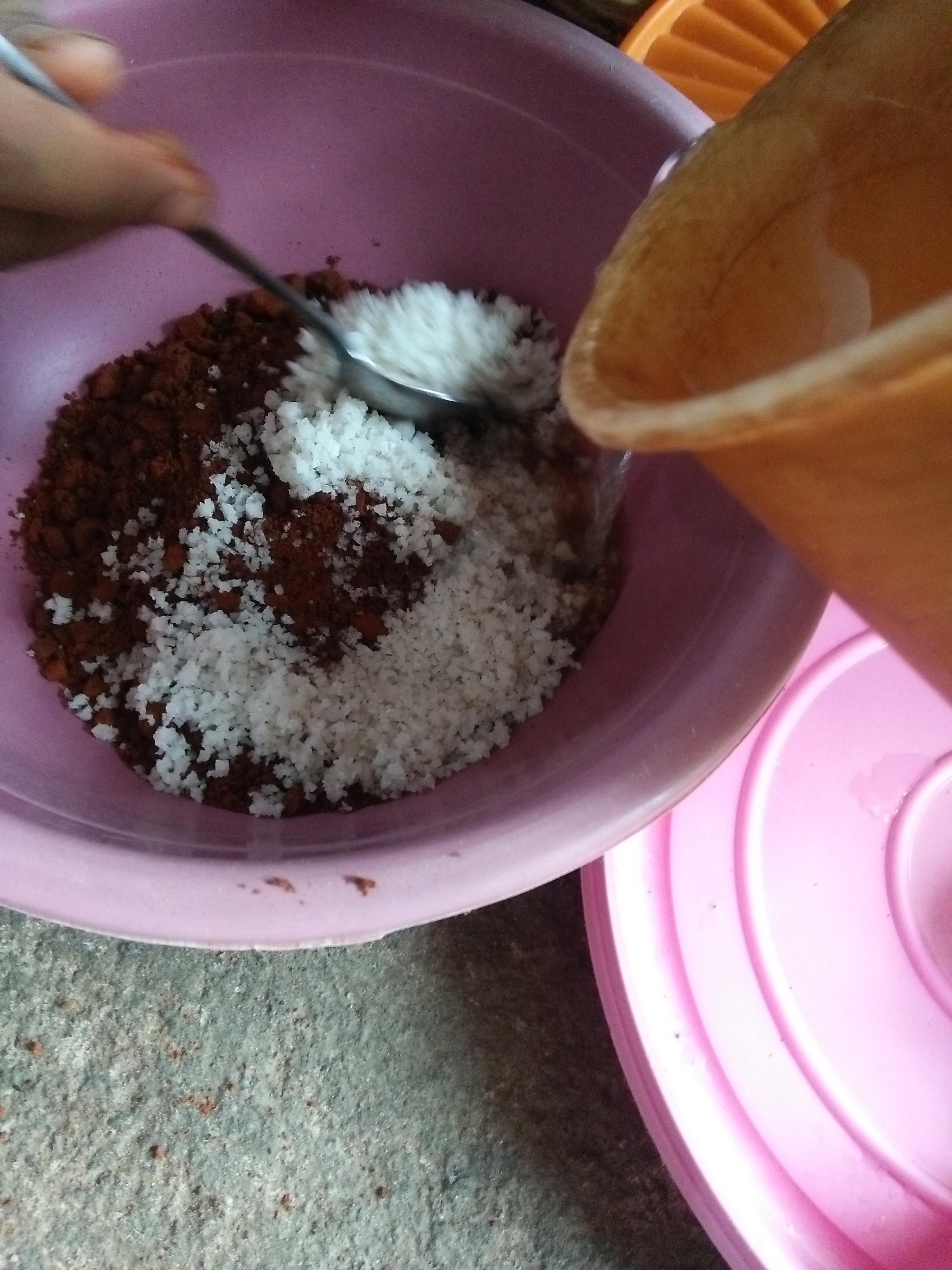 5. Masukkan garam. Aduk lagi mengaduknya menggunakan tangan atau sendok.