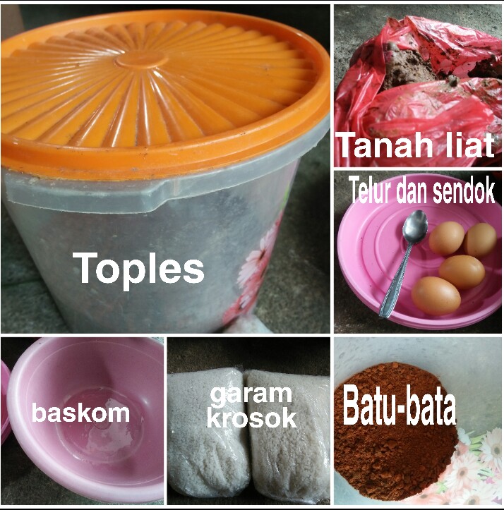 3. Batu bata 4 buaah,hancurkan hingga benar-benar lembut